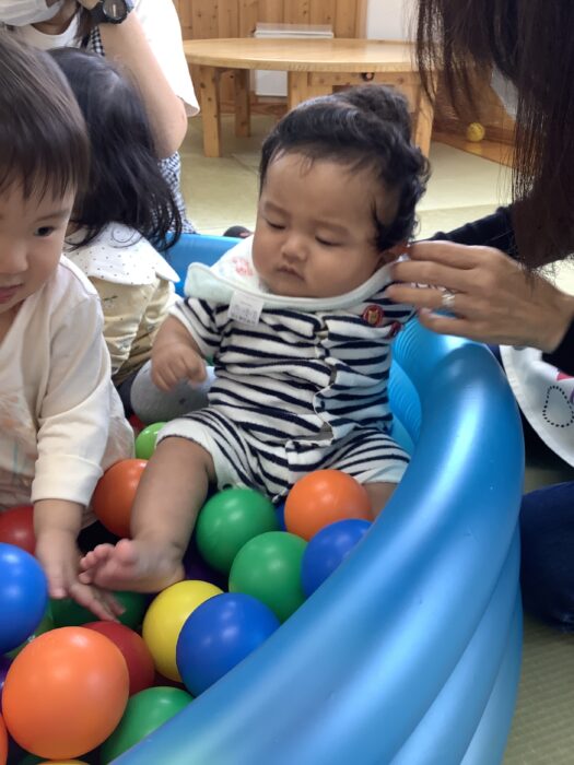 初めてのボールプールにドキドキ(>_<)