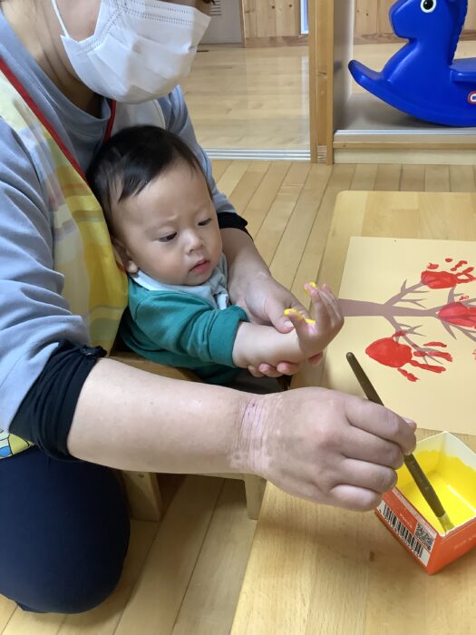今日は製作をしました♪手のひらに絵の具を付けて