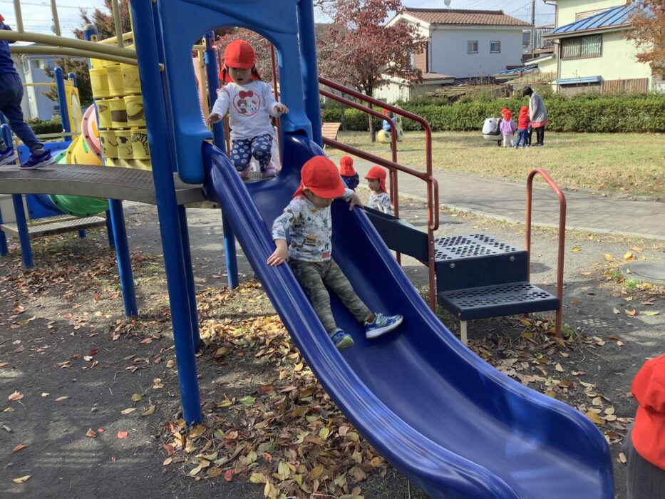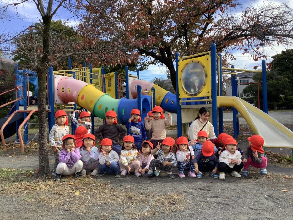 今日はおひさまも出て、肌寒いですが過ごしやすい1日になりましたね!あかぐみさんは、おさんぽ日和だったので、田ノ上公園に行きました!
