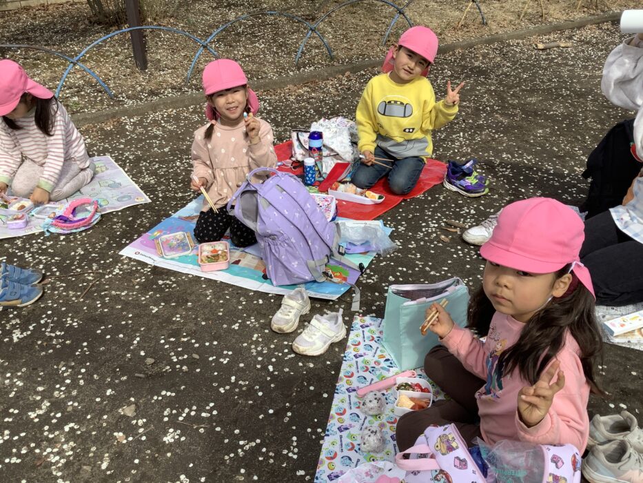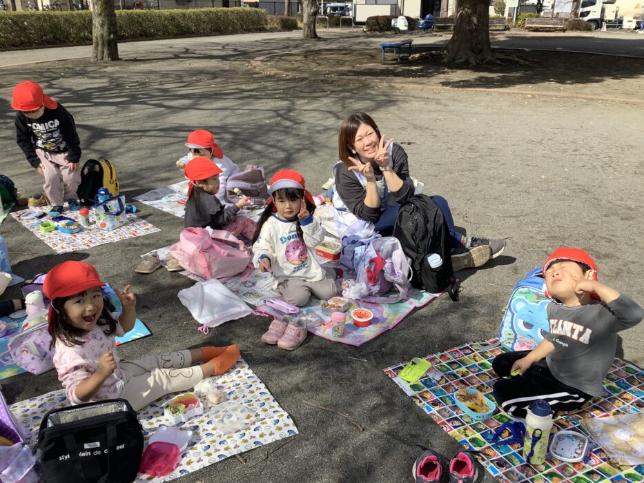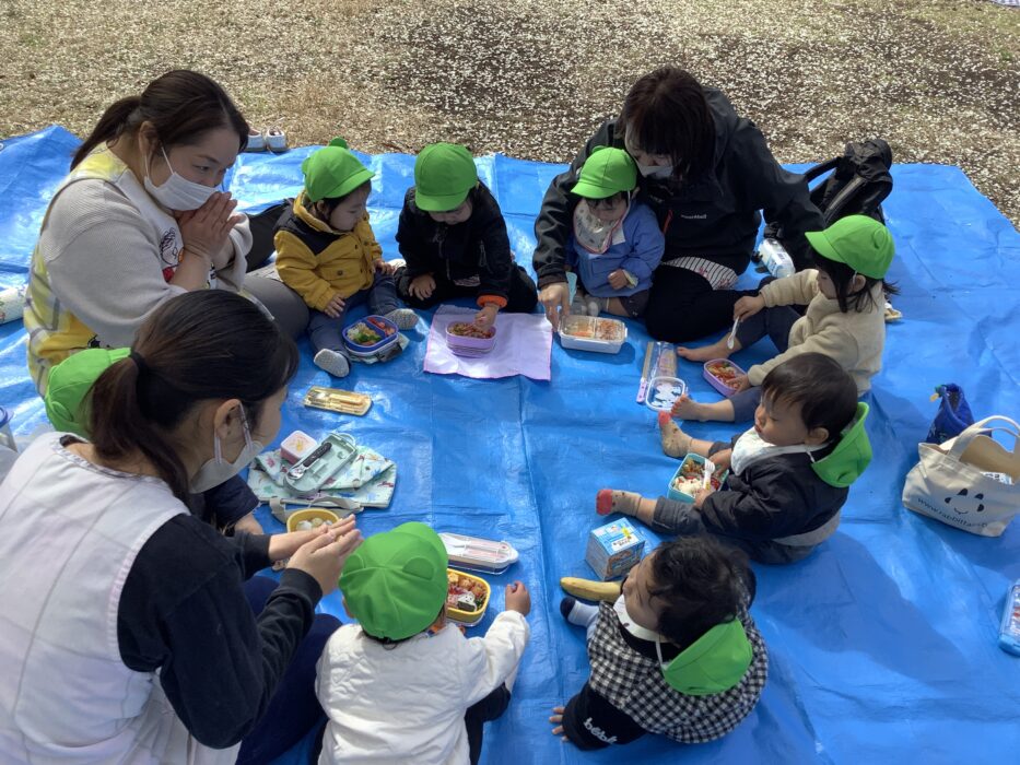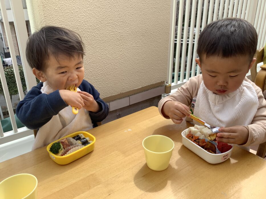 保育園に帰ってきてからテラスでお弁当を食べました!