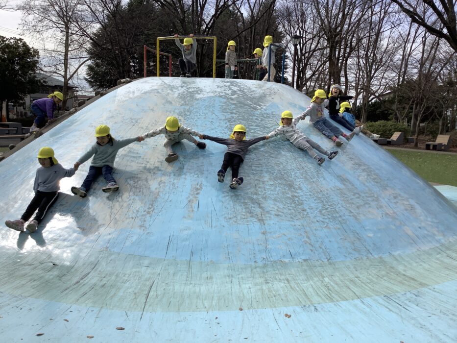 手を繋いで富士山の滑り台を沢山滑り楽しみました♪