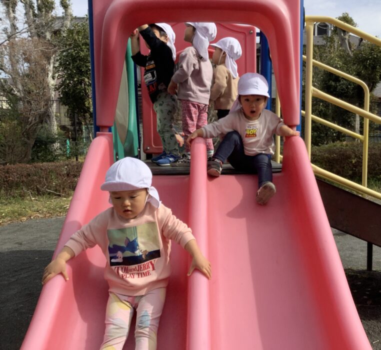 滑り台をシューっと滑ってとても楽しそうでしたよ☺️