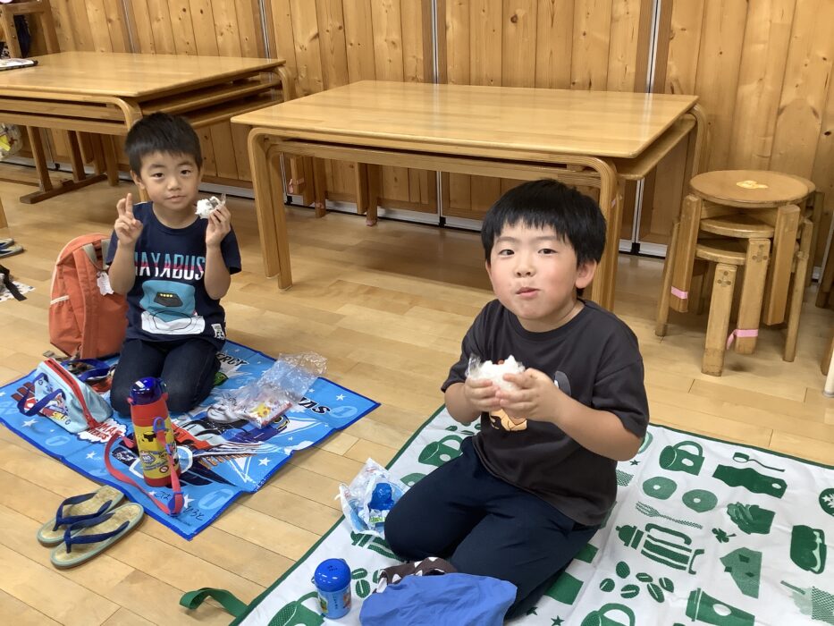 その後はお家の方が作ってくださったおにぎりを笑顔で頬張り