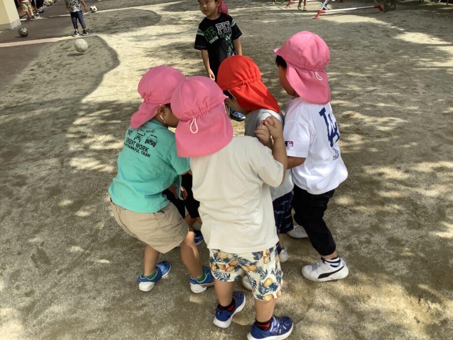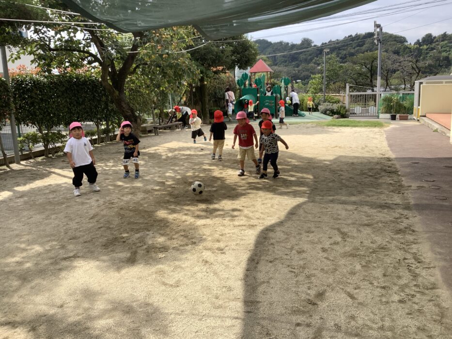 サッカー少年たち⚽️ワイワイボールを蹴ります!あかぐみさんにもパス!!