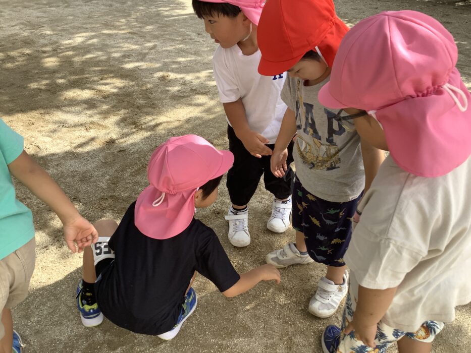 「オニ決めする人〜?」「はーい!」とやってきたのは、あかぐみさん!!ももさんの仲間に入って鬼ごっこかな😊丁寧にやり方を教えてくれて嬉しそう✨