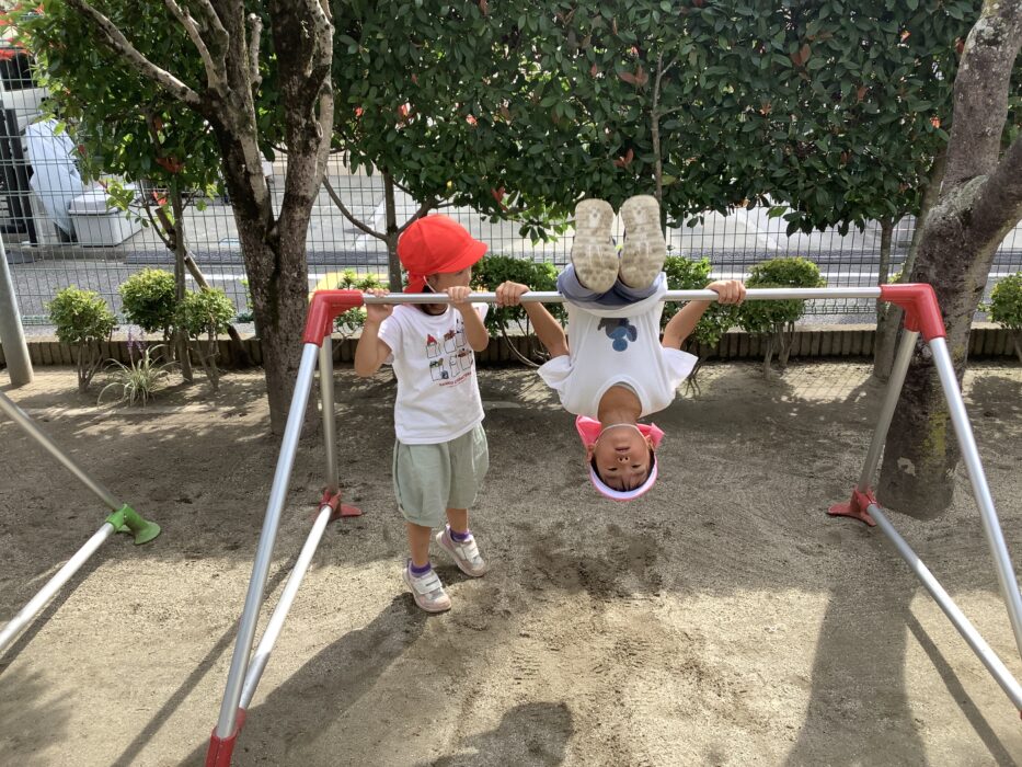 お兄さんの逆上がりをじーっと見つめて…「私もやってみたいな!」憧れのももさんです!!