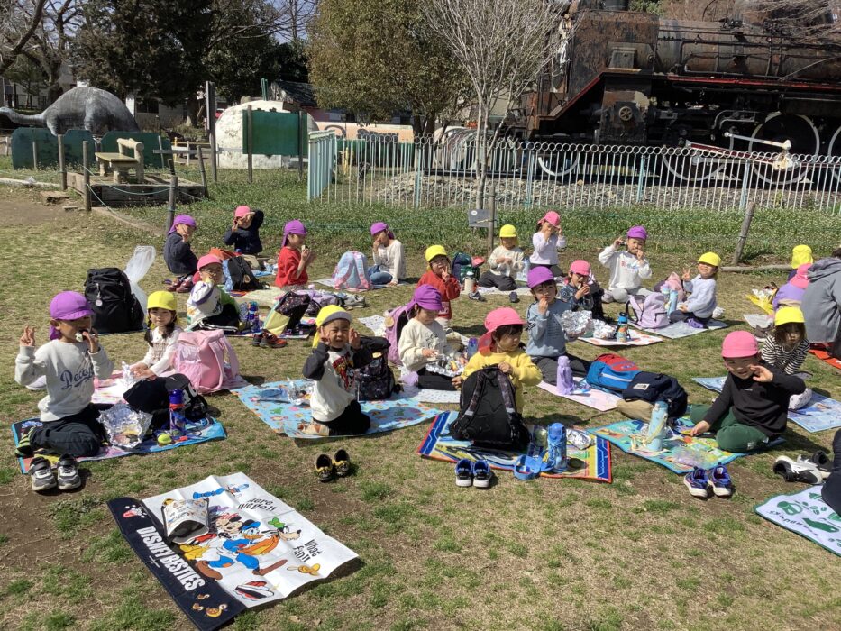 たくさん遊んだ後は、給食室の先生が届けてくれた野外食メニューを広場でいただきました💕