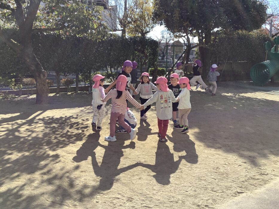今日は晴れて暖かく気持ちが良かったので、園庭でももぐみさんと遊びました。