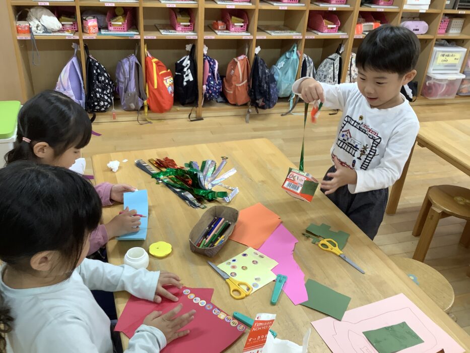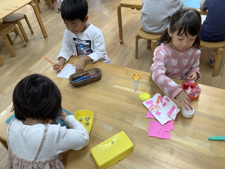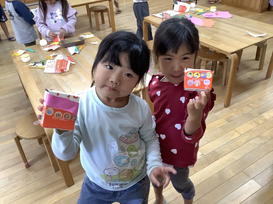 牛乳パックや、画用紙、シールなど好きなものを使って