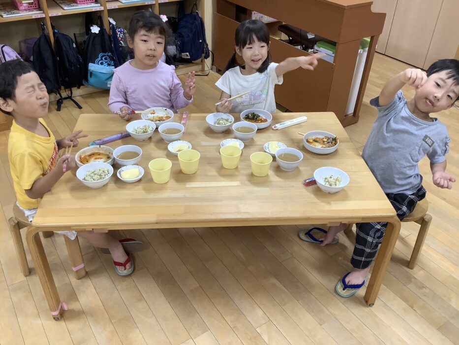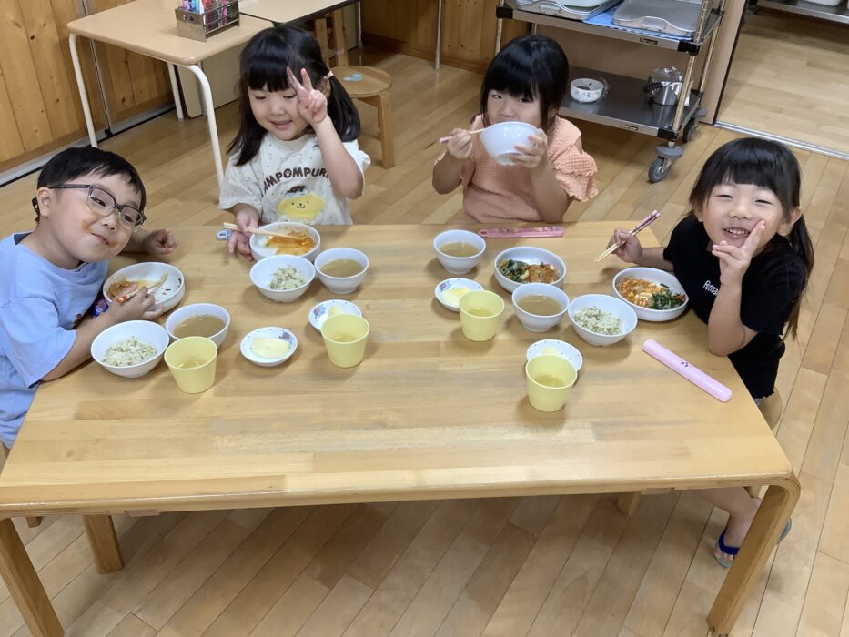 2025/10/14 何の匂い…?(もも組) 今日は幼児交流保育で 運動会の交流リレーの通しをした後 園庭で遊びましたよ🍀 すると子どもたちから なんかいい匂いがする〜との声が🌟 園庭に咲いていた金木犀と気がついたみんなは 散っていたお花を拾い クンクンクン…これだ❣️と 秋を感じていましたよ🍂 今日の給食もお友達と ワイワイおしゃべりをしながら楽しみました☺️💖 寒暖差の大きいこの頃… 衣服の調整をしながら体調に気をつけて 過ごしていきたいですね😊 小谷野