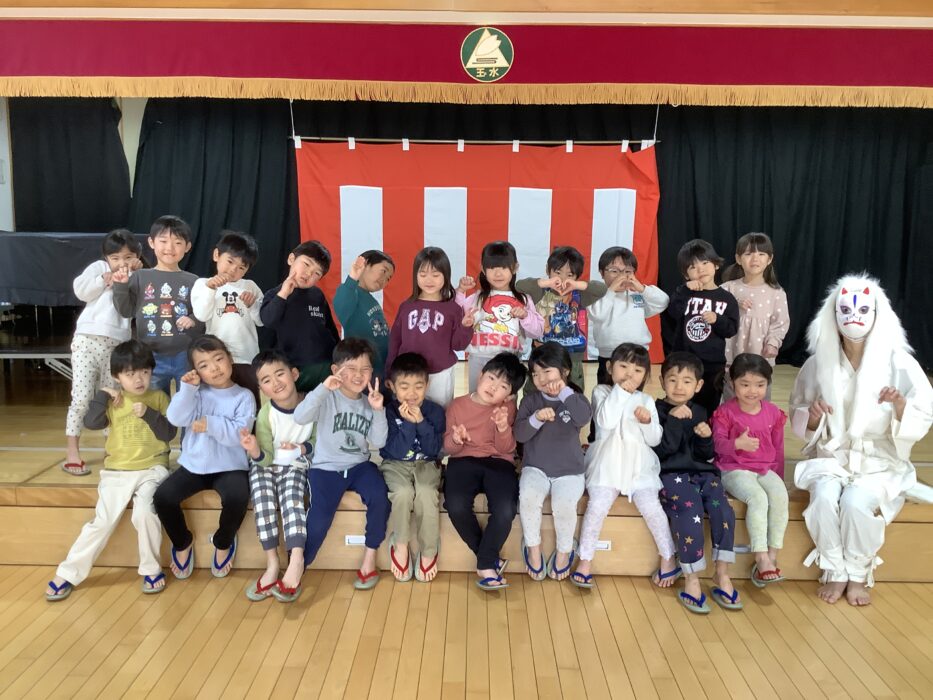 豆まきはご覧の通り「鬼退治するぞ〜」と