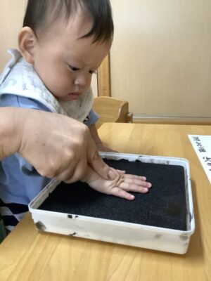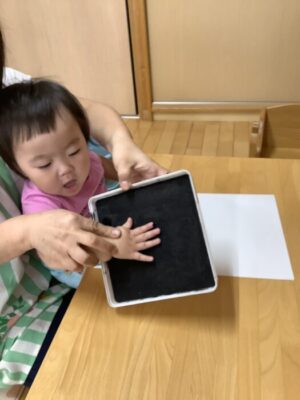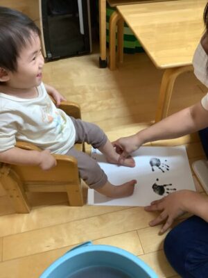 子どもたちは手型・足型にも慣れてきたようで、笑顔を見せるくらい余裕の表情です。