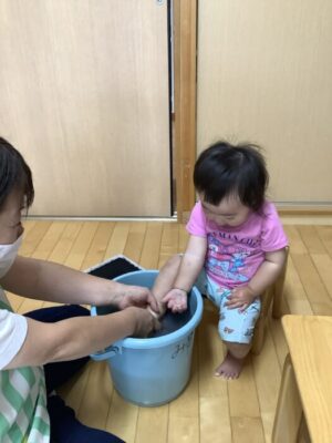今日は朝のおやつを食べた後に、手型・足型をとりました!