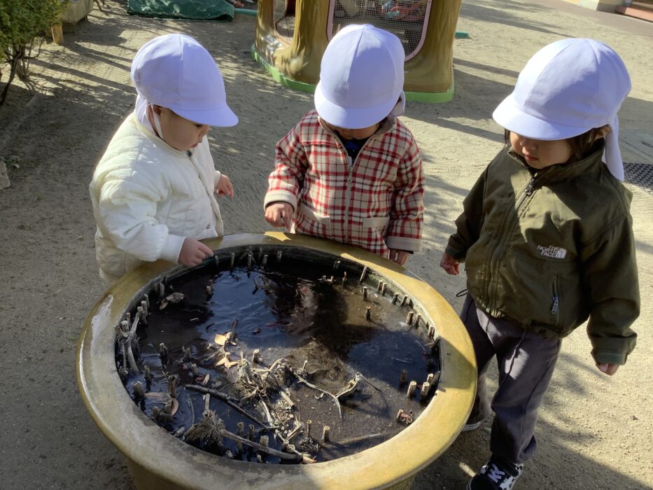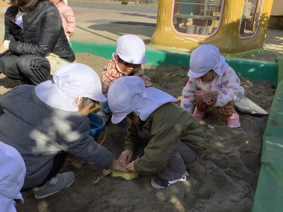 今日も寒い一日でしたね!しかしお日様の暖かさを借りて今日は園庭で過ごしました。