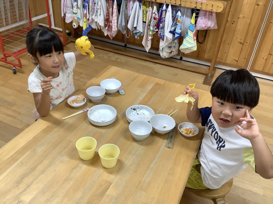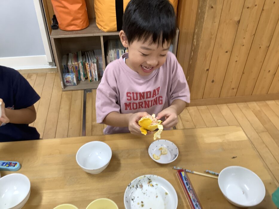 「見てー!お花みたいに綺麗にむけたよ!」と見せてくれます✨