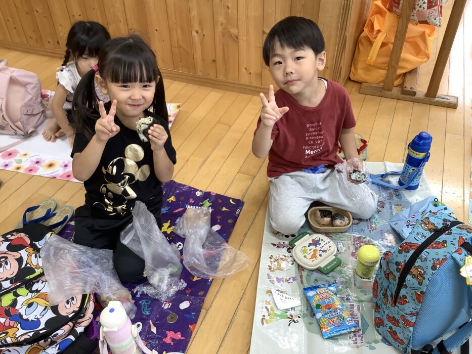 おにぎりの具材が一緒の子を見つけたり、シートが一緒の子を見つけたり、とっても楽しそうでした☺️