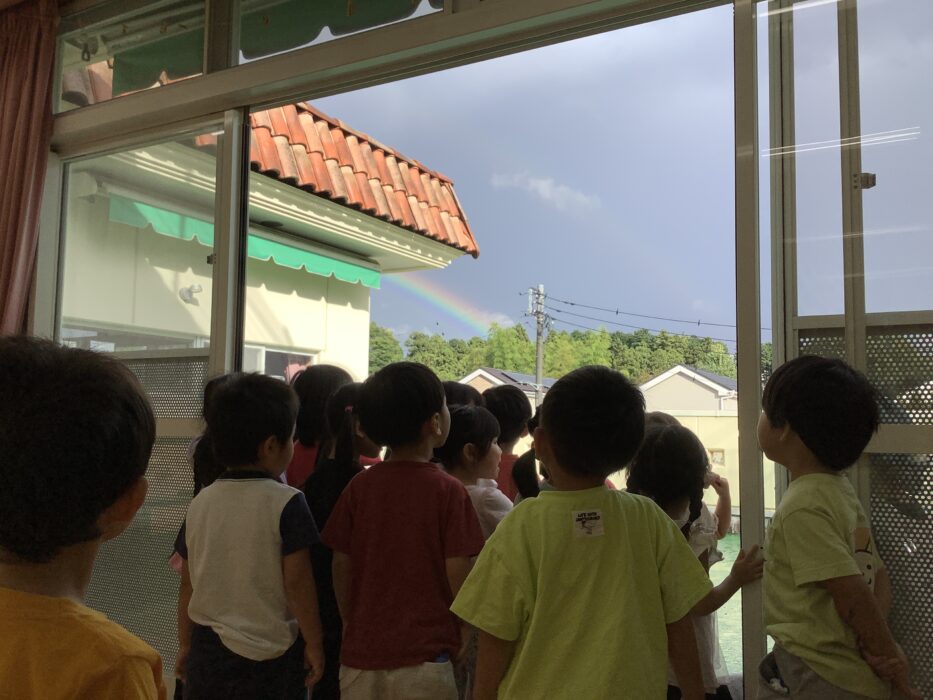 おやつ前にみんなで虹を見て〝にじのむこうに″をみんなで歌いました🎵