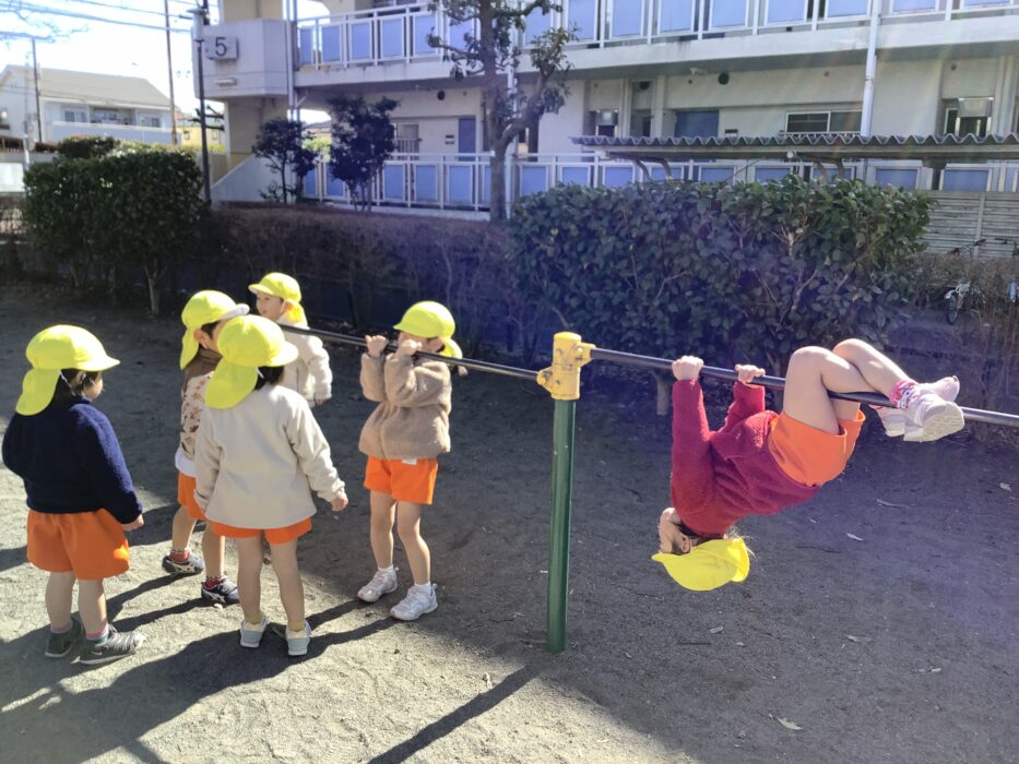 鉄棒では1人で通称「ぶたのまるやき🐷」が出来るようになってきました。