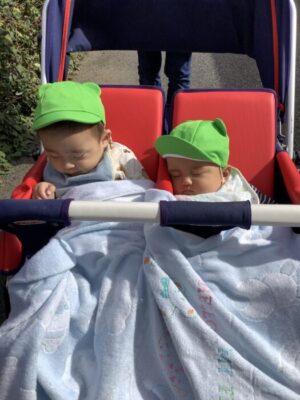 月齢が低いお友達は、ベビーカーの心地良い揺れには勝てず夢の中へ…