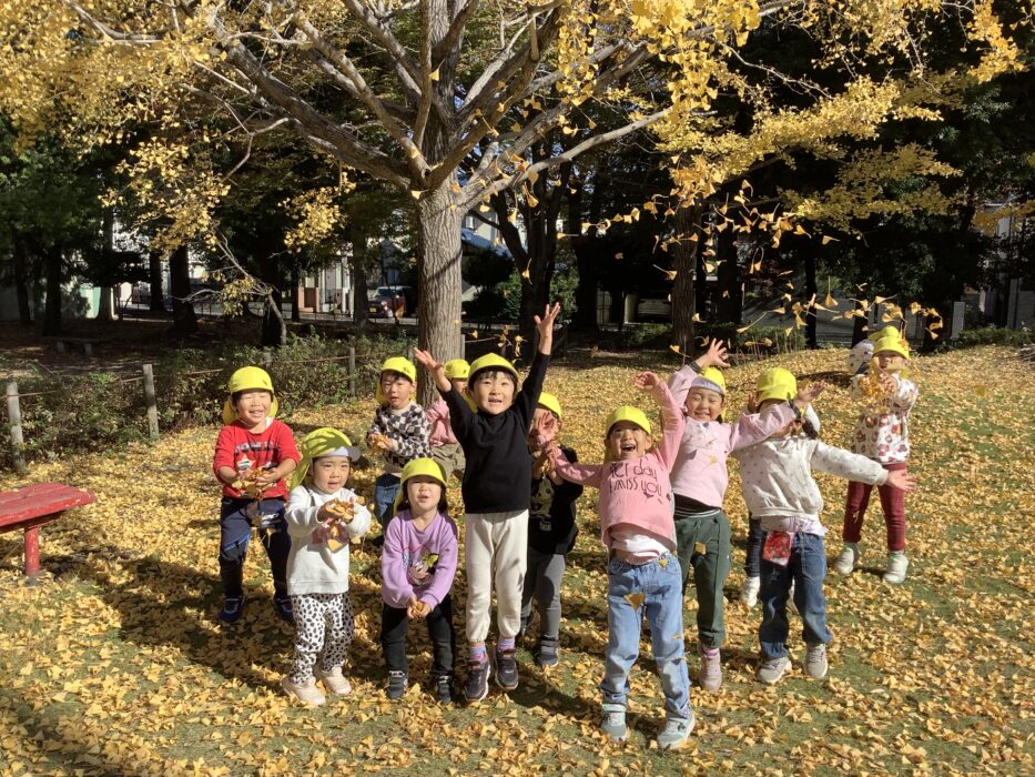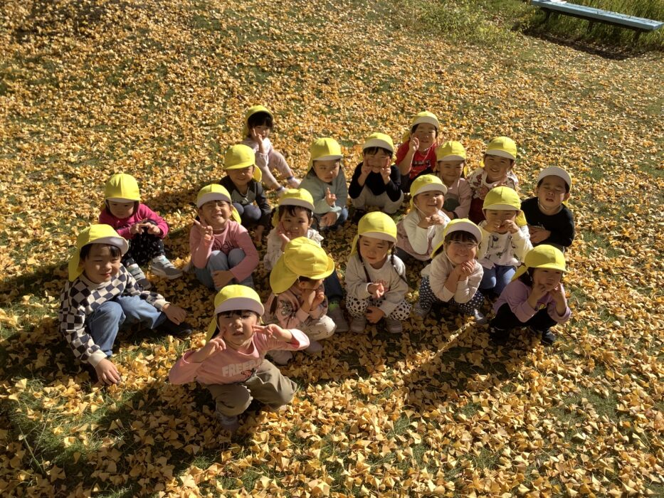 遊具で遊ぶよりも、落ち葉で遊ぶ方が楽しかったようで、みんなで落ち葉をかけ合いっこしていました⭐️自然の中で楽しく遊べるのはいいですね!