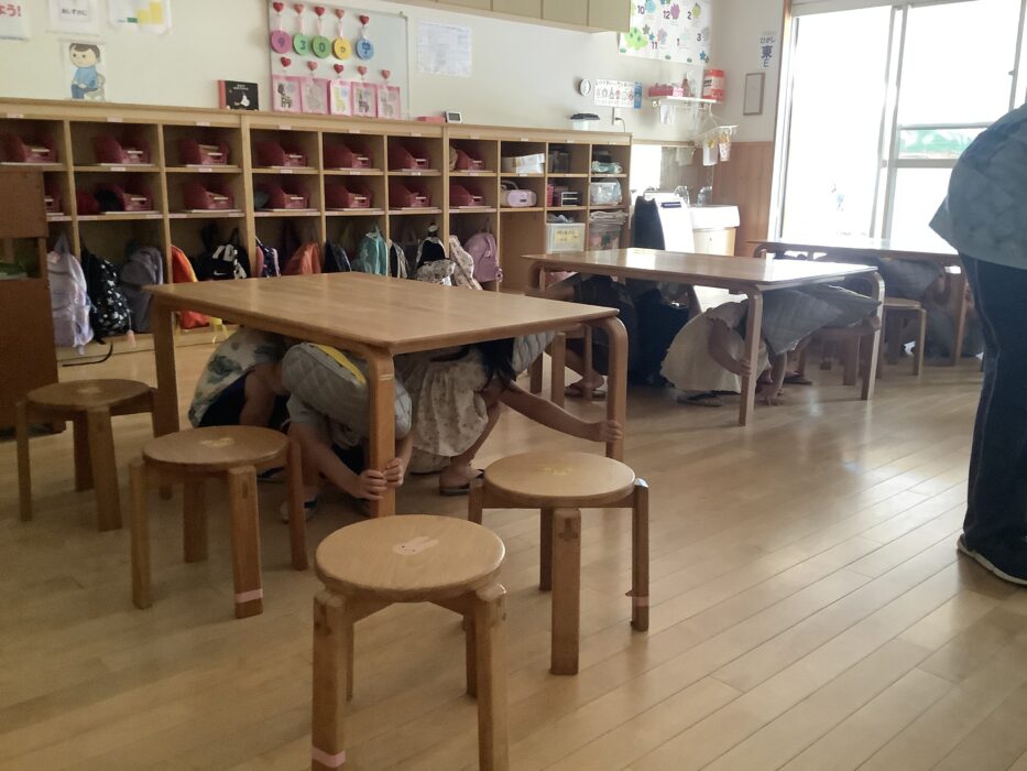 いつもの避難訓練と違い『緊急地震速報』がまずかかり驚いていましたが、