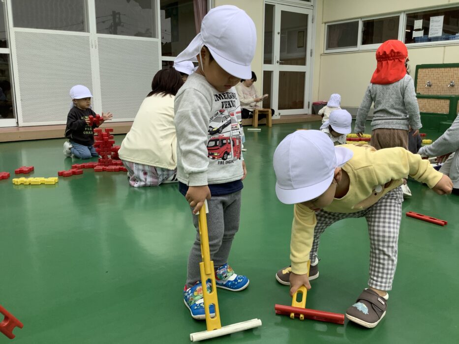 少しずつ見立て遊びができるようになりました。子ども達の発想力には驚かされますね!