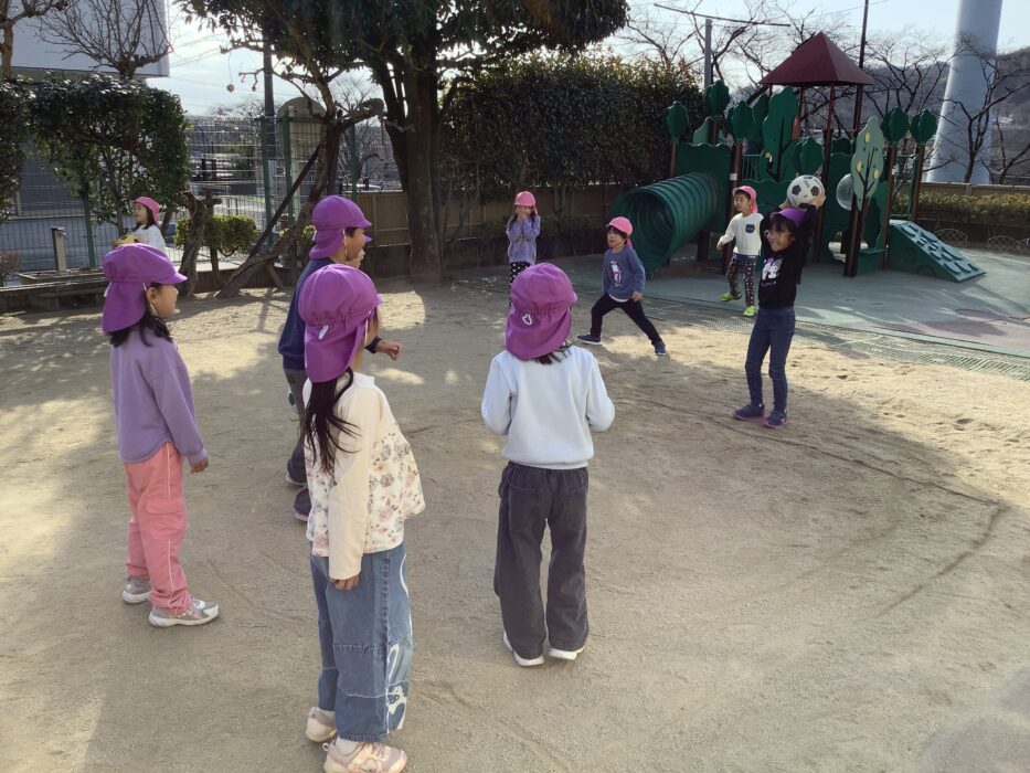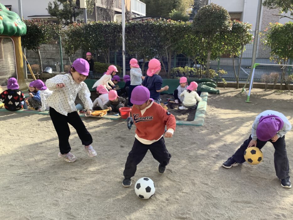 ボールを蹴ったり投げたりして体をいっぱい使って遊ぶ子どもたち🎶