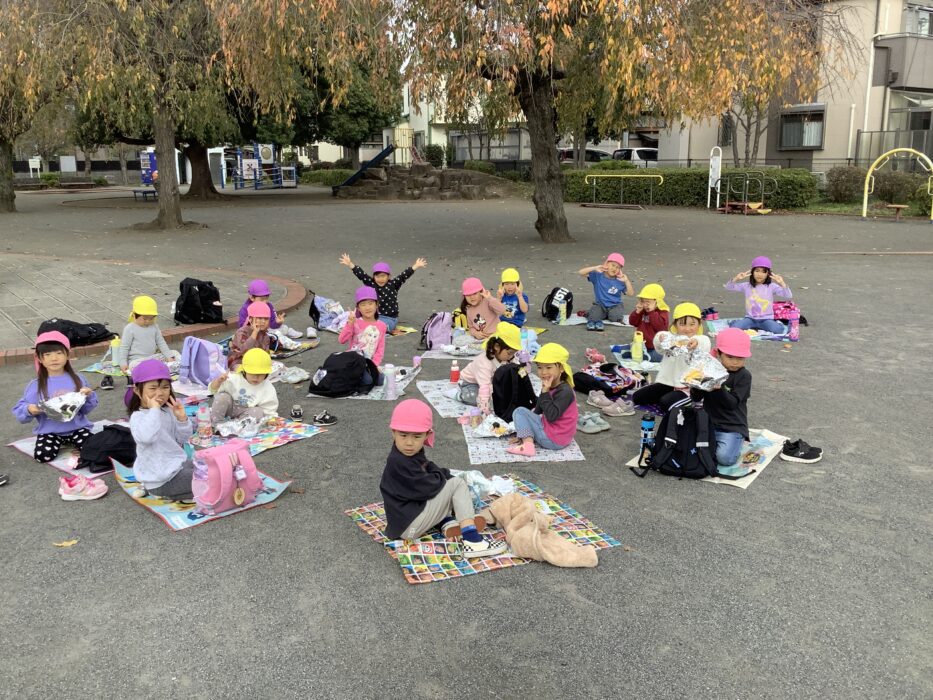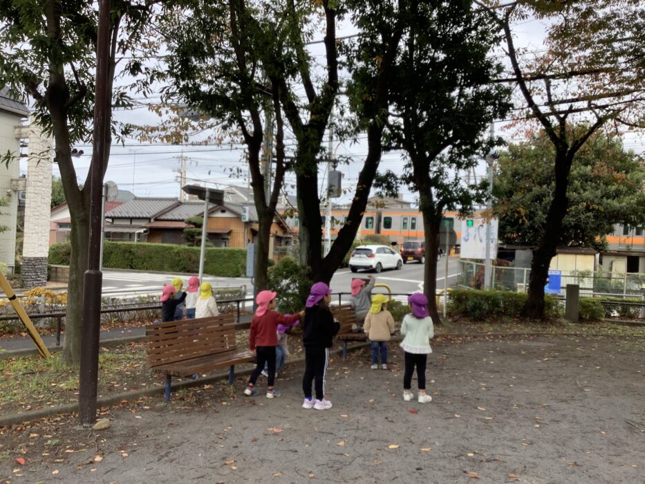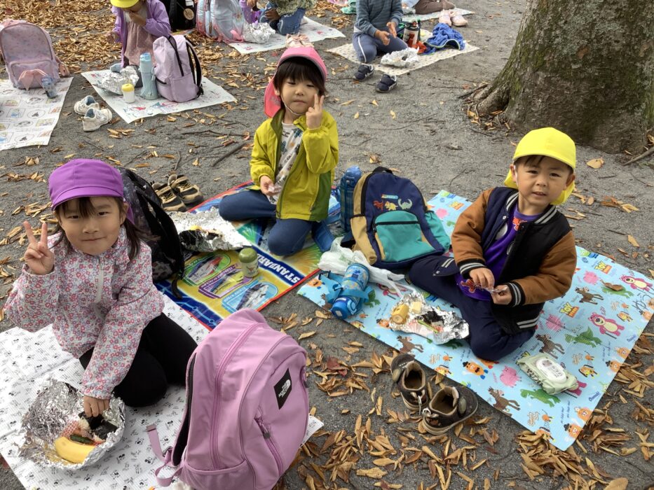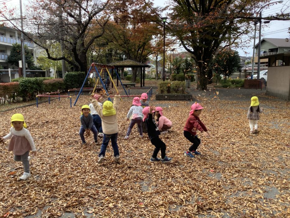両手いっぱいに落ち葉を集めて、みんなで「せーの!」と言って落ち葉を振りかけていました🍂