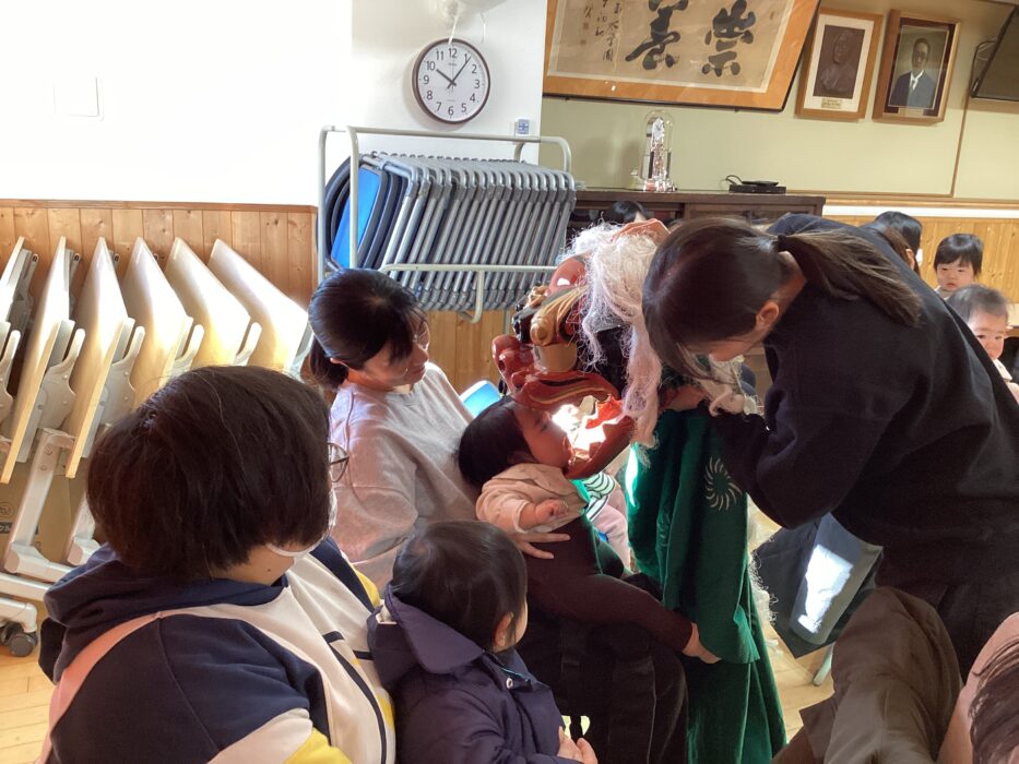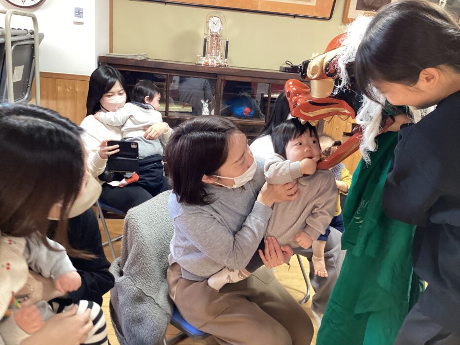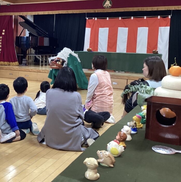 獅子舞を見た後は、お獅子と触れ合ってもらいました。