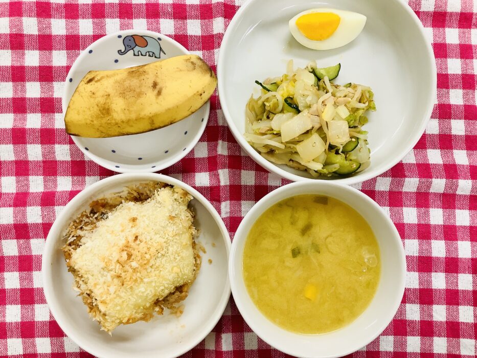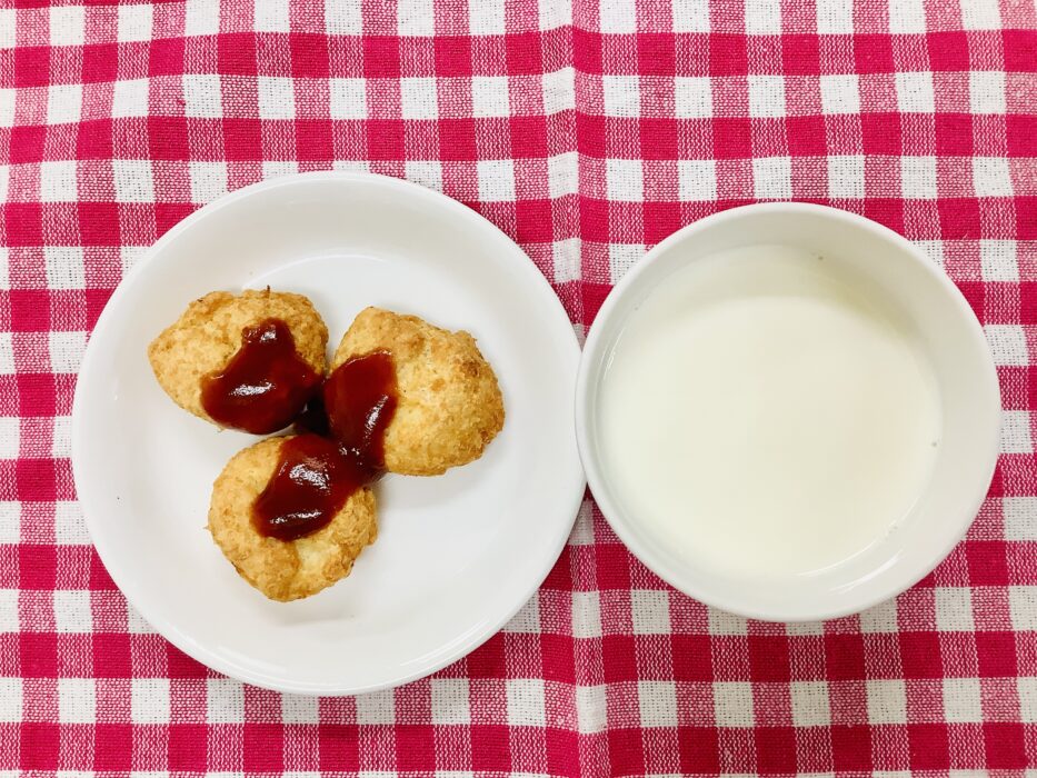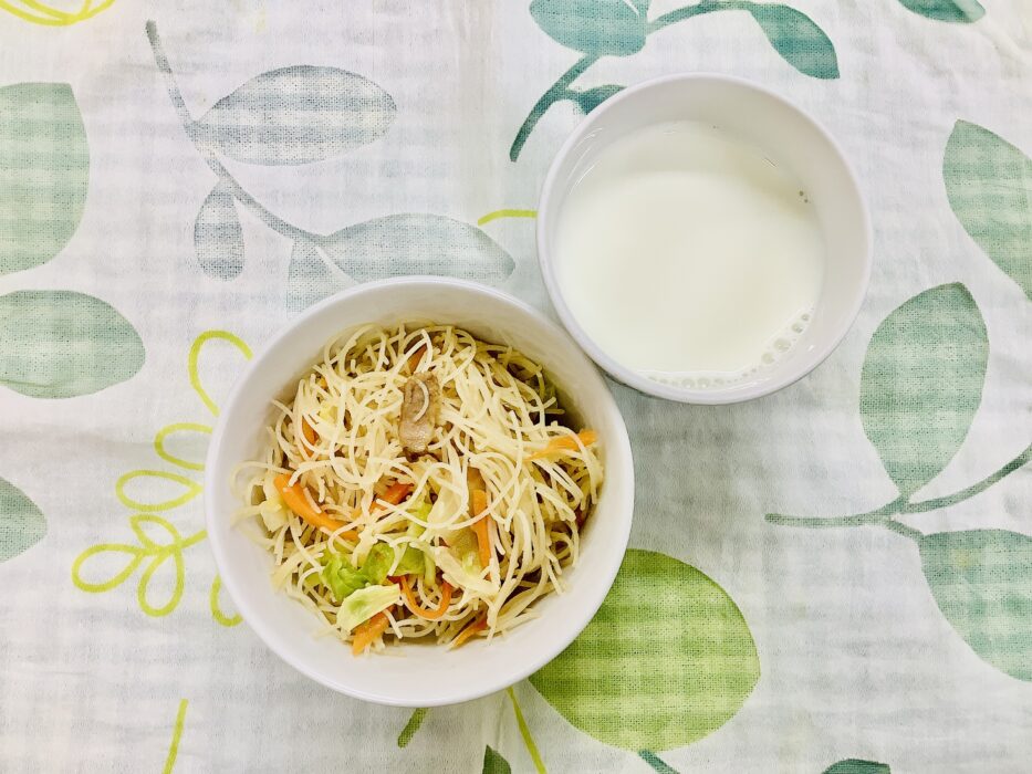 今日もお給食をお腹いっぱい食べました。