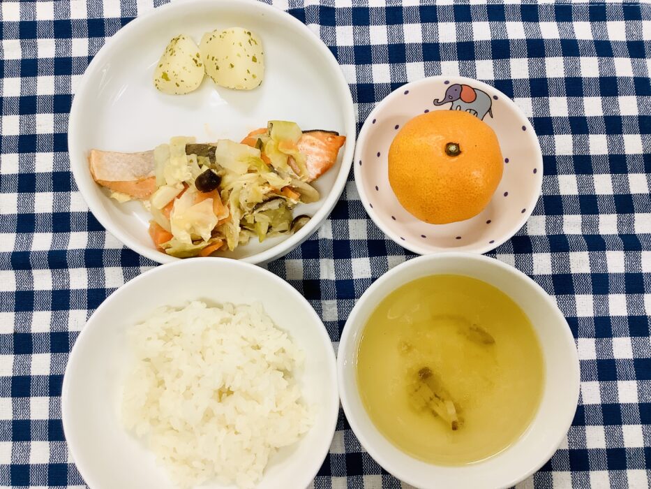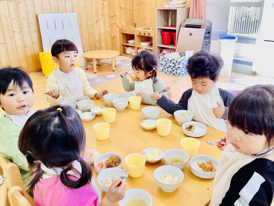 今日は食べる事が忙しい様子で給食に夢中でした。
