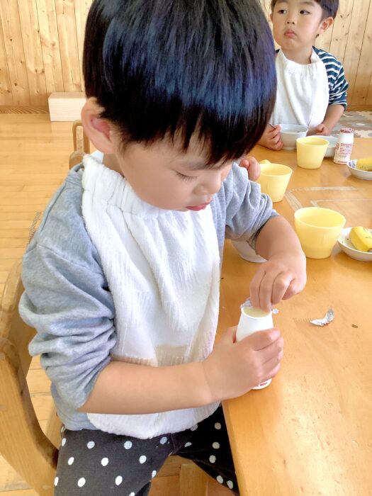 入園当時はまだ食べさせてもらっていたのが