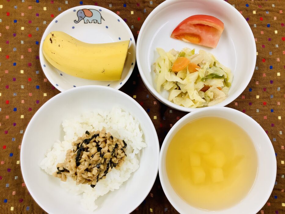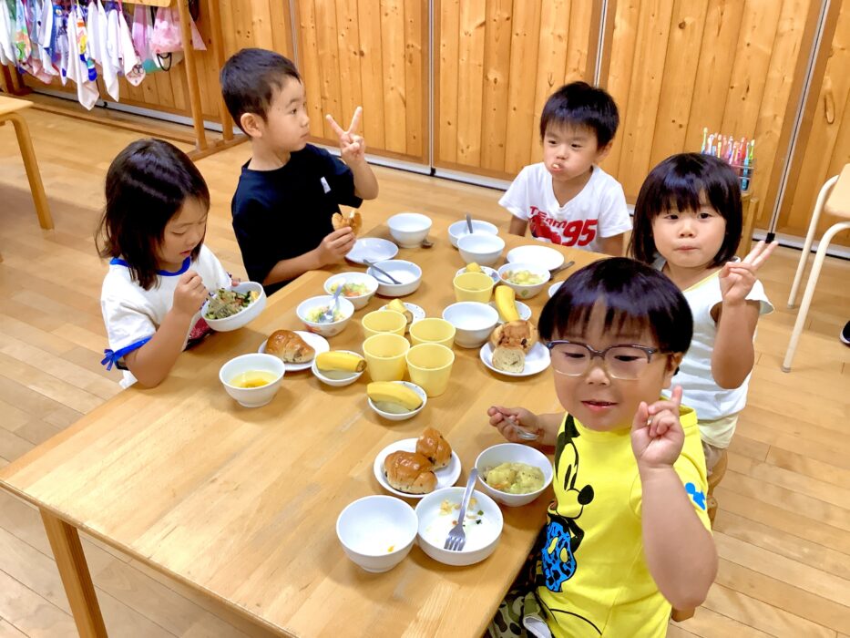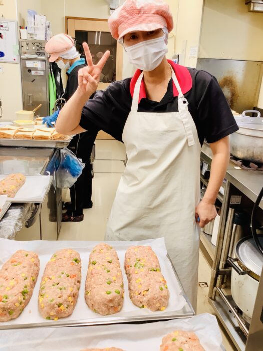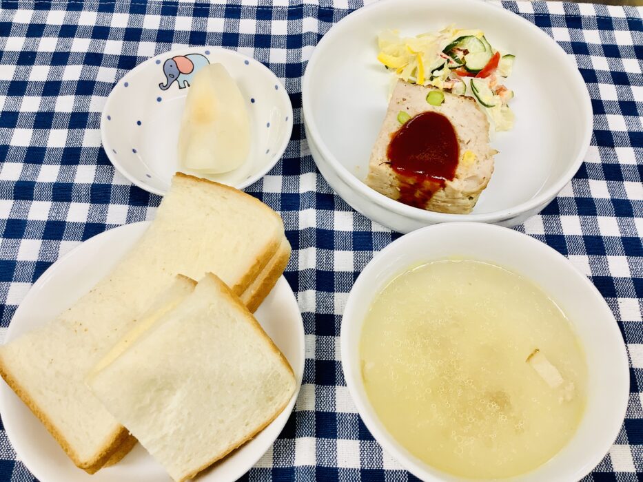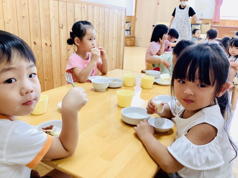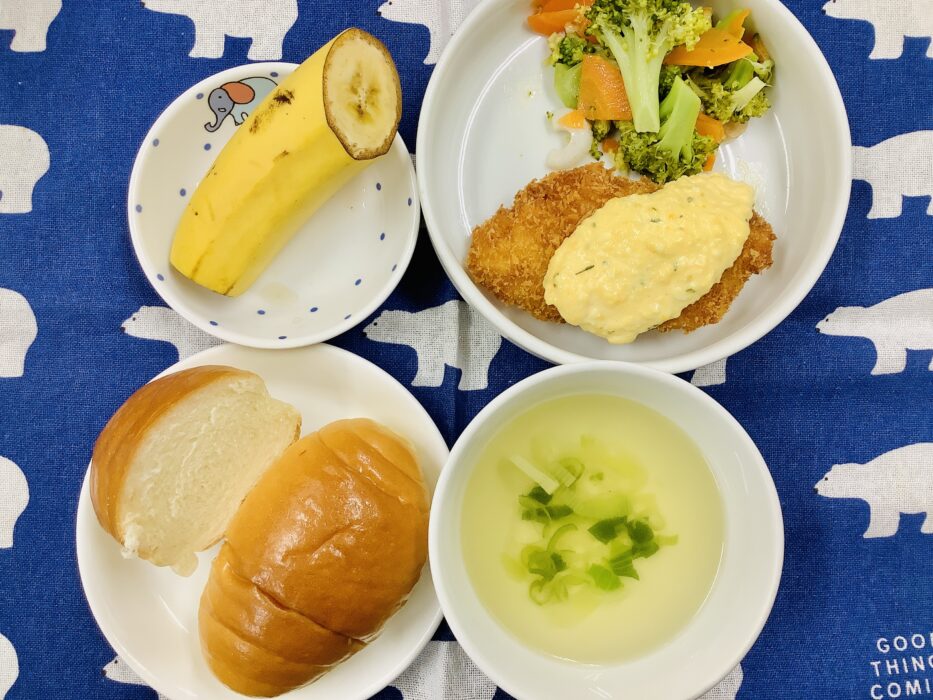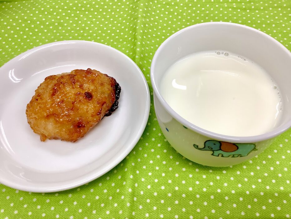 お給食です。ハンバーグは丸い形をしているのが多いけど