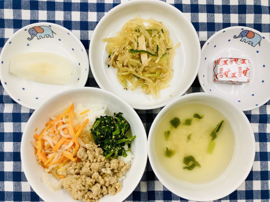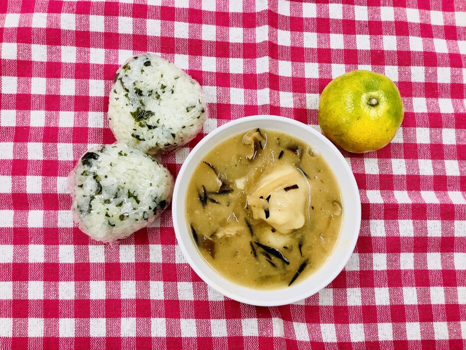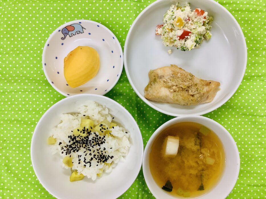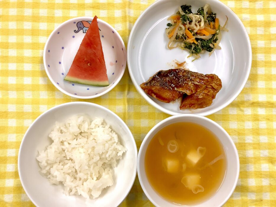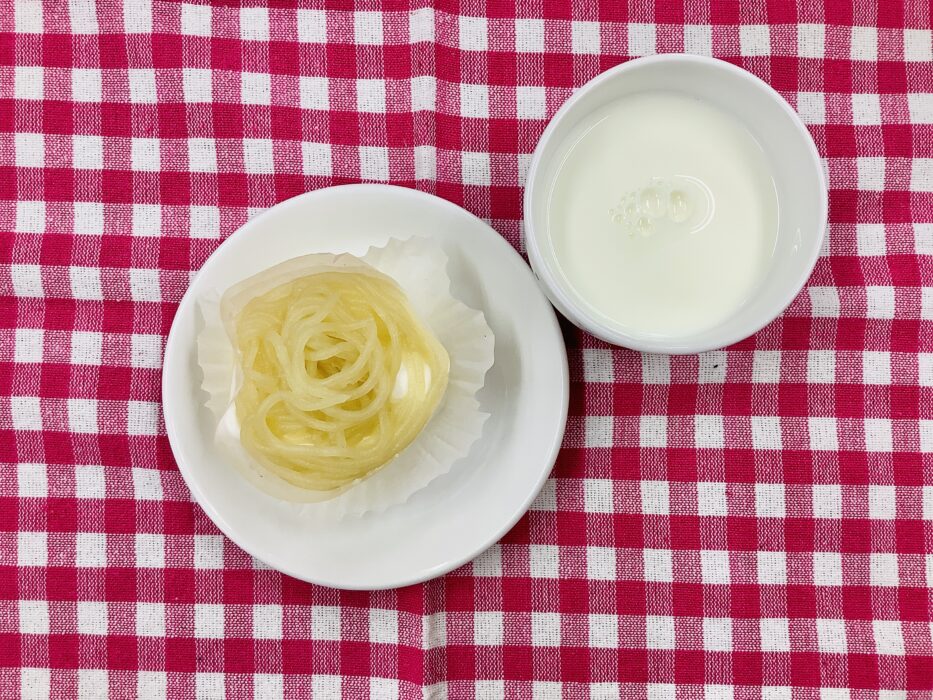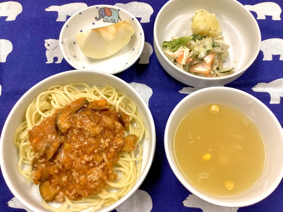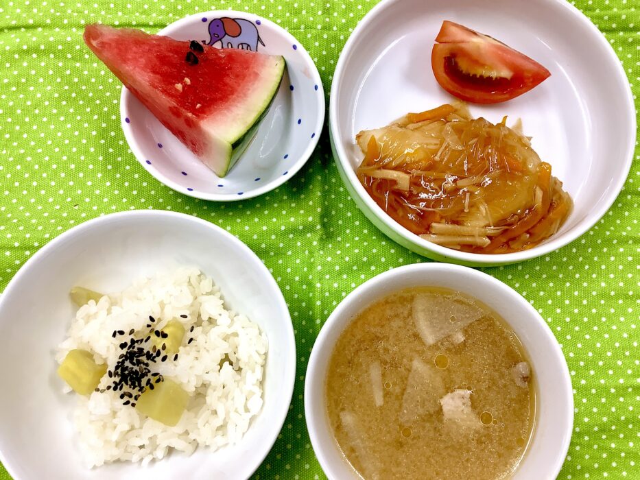 お給食です。ハンバーグは丸い形をしているのが多いけど